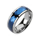 Blue Cyclone - FINAL SALE Blue IP and silver stainless steel ring with stacked wire inlay and polished edges