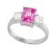 Our Pink Kiss ring turns the sparkle factor up to 11! Yes, this is what heart-breakingly beautiful looks like. Just look at the way this pretty sterling silver setting splits into two rows of white pavé czs, to perfectly showcase the large, 1.25 carat pink tourmaline colored cubic zirconia solitaire....